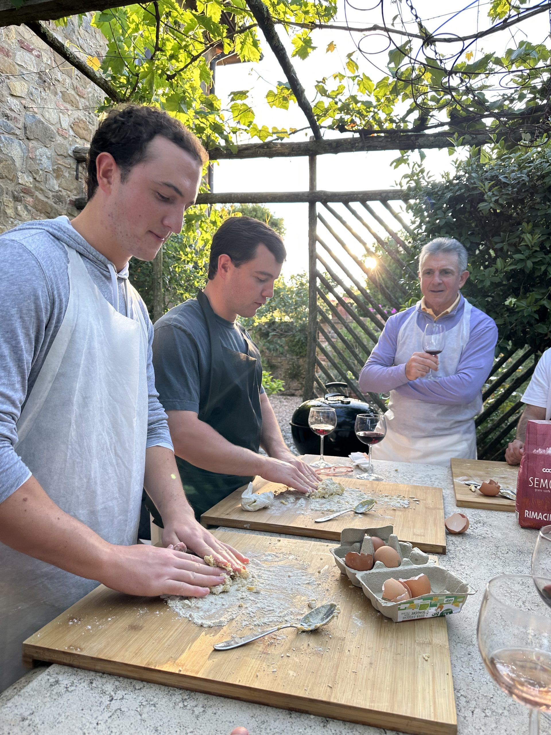 We enjoyed the most amazing meals, even having a chef come in and give us a cooking lesson – teaching us to roll our own pasta + make our own sauce. Our favorite was sugo finto aka “fake sauce” that somehow renders purely vegetables, spices + olive oil into something you’d swear had meat in it!! We hiked and walked the estate to a series of tiny (and I mean TINY) towns rich with history (AND more food). San Gusmè was so small it had ONE restaurant – we hiked there every day to have a coffee or glass of wine + enjoy the scenery. We enjoyed a day trip to Siena + one deep into Chianti for a wine tasting at Tenuta Fanti with the added benefit of the most beautiful church I’ve ever seen!! The monks there at Abbazia di Sant’Antimo make soap + honey – it’s absolutely worth a trip to the winery just to see this little church!! On our last day, we drove around to a few of the other smaller villages within about 10 miles of the villa, and found one that has TWO Michelin-starred restaurants – La Bottega del 30 and L’Asinello!! We didn’t have the chance to dine there, but I’d love to hear from you, Creative Tonics, if you’ve ever been!!
